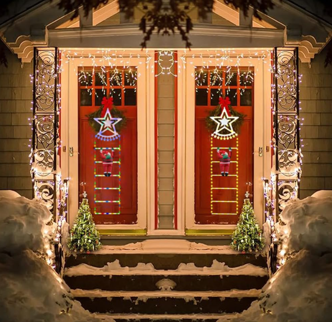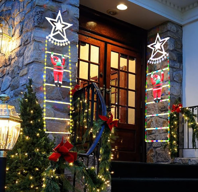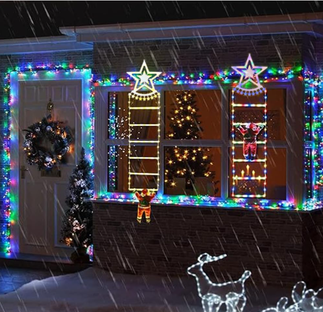 1.75m LED Santa Ladder Lights – 8-Mode Christmas Fairy Lights with Timer (Warm White)