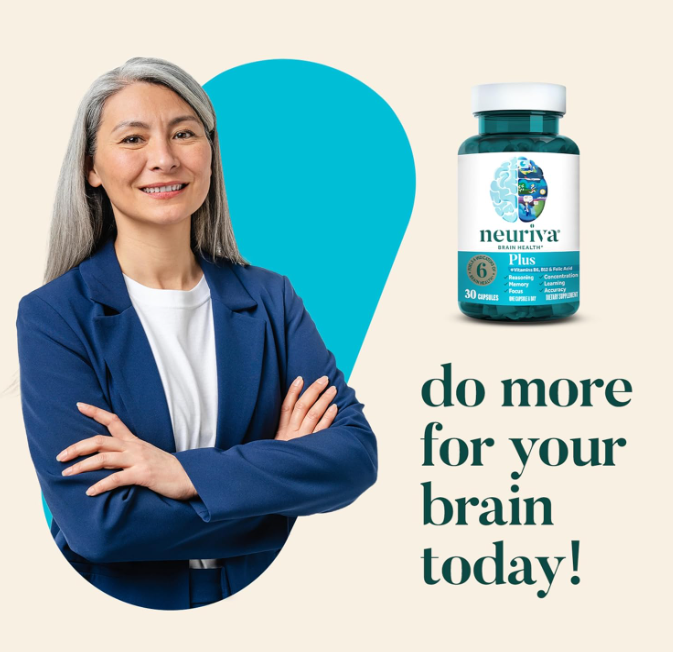 NEURIVA Plus Brain Supplement for Memory and Focus Clinically Tested Nootropics for Concentration for Mental Clarity, Cognitive Enhancement Vitamins B6, B12, Phosphatidylserine 30 Capsules