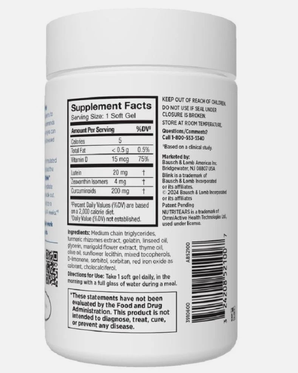 Blink Value Pack NutriTears Softgels 50 CT and Lubricating Drops for Dry Eyes Free Shipping