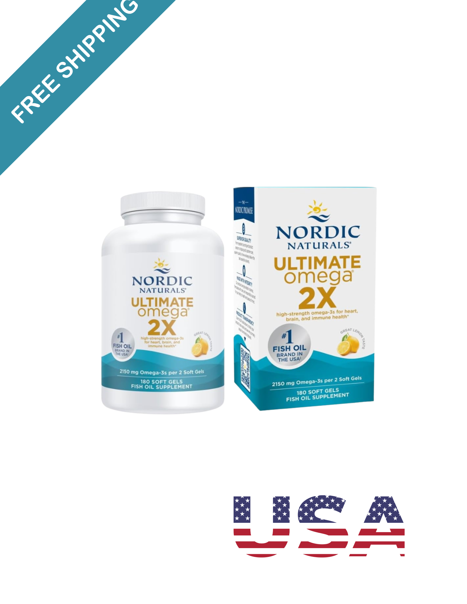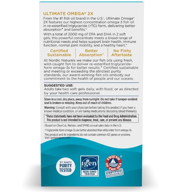 Nordic Naturals Ultimate Omega 2X, Lemon Flavor - 180 Soft Gels - 2150 mg Omega-3 - High-Potency Fish Oil with EPA & DHA - Promotes Brain & Heart Health - Non-GMO - 90 Servings