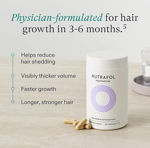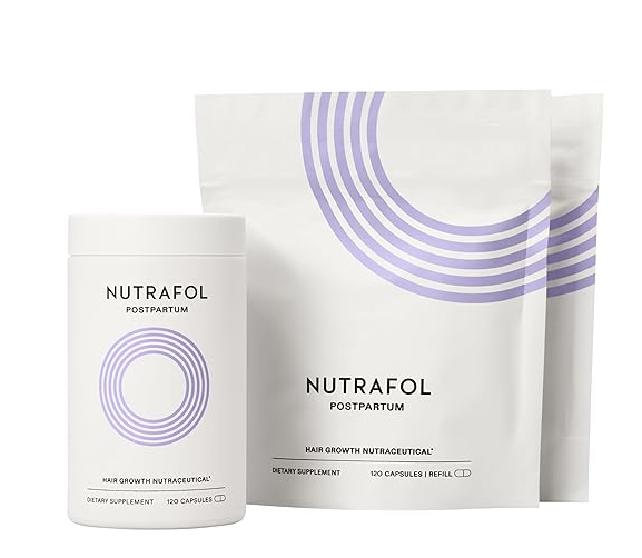 Nutrafol Postpartum Hair Growth Supplements, Clinically Tested for Visibly Thicker Hair and Less Shedding, Breastfeeding-friendly - 1 Month Supply